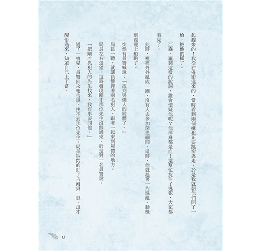 過了一會兒,員警回來報告說,找不到那位先生。局長納悶的盯了吉爾貝一眼,這才醒悟過來,知道自己上了當。