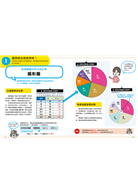 「小學生的統計圖表活用術」進入第三冊,除了前兩冊的表格、長條圖、折線圖、複合式統計圖,又加入了圓形圖和帶狀圖,當孩子認識的統計圖表變多,便可以開始學習更靈活的運用圖表,藉此找出需要的答案哦!