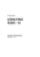 本書敘述著某件非比尋常的事件,恰恰也只會出現在艾諾那獨特的書寫裡。