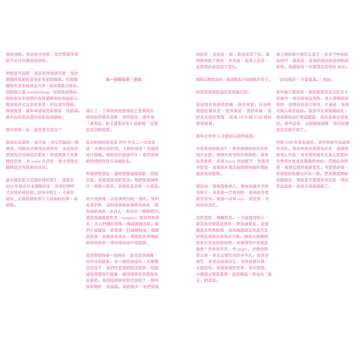 【關鍵詞】父親。錄影帶。家族。東勢。國王。私生子。房間。Gay Porn。性愛。媽媽。很ㄎㄧㄤ。同志。挑釁。LGBTQ。臺北。孽子。河流。邊緣。非典。陽具燈。酷兒。派對。柏林。同性婚姻。迷幻。攝影。碧兒。不談。喪禮。解構。認同。Pinkwashing。標籤。Free The Nipple。變裝。皇后。跨性別。Fisting。禁忌。Hole。檔案。信件。刺青。Hi8。對話。居家。Free The Penis。娛樂。受刑人。地圖。桃太郎。阿嬤。