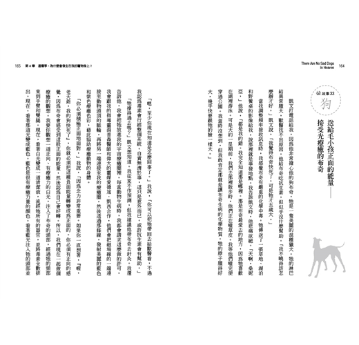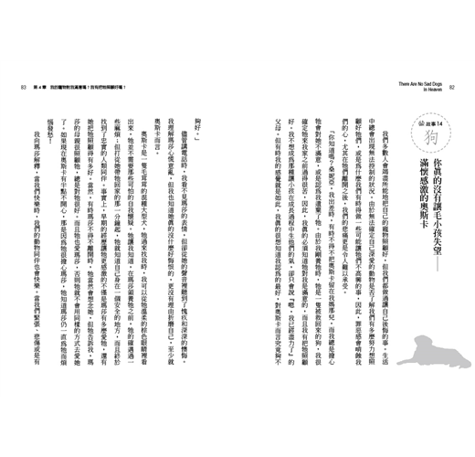 「如果你曾經失去心愛的動物同伴,並因為某些未解的遺憾而感到懊悔,那麼這本書或多或少都能協助你走出陰霾。即使你對故事的真實性存疑,也無損於它的療癒效果,因為閱讀那些對話的本身就是一種啟發。」