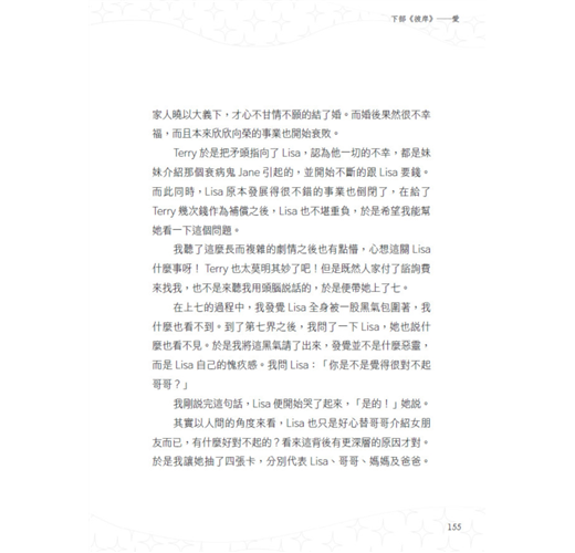 漸漸的,有許多朋友開始找我幫他們做一些有關生命課題的療癒,部分個案內容經過案主的同意,我都發布在我的朋友圈中,其中有些文章也引起了多人的共鳴及喜愛,因此,我從中整理了比較精華的部分,形成了這本書。