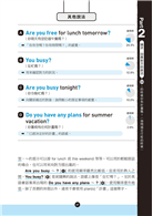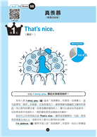 在每種場合中,雖然有很多說法可以表達相同的意思,但隨著場合正式與否、和對象的親密程度、要傳達什麼情緒,使用的說法也有所不同。例如表達「好吃」,It’s good是一般的說法,Yummy是小孩子或大人帶點童心的說法,It’s delicious則主要使用在比較正式的場合。本書在介紹高頻率表達方式的同時,也解說各種說法之間的細微差別,讓讀者能夠更精準地傳達自己的想法。