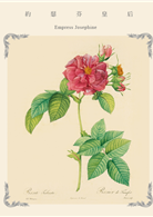 約瑟芬皇后梅爾梅森城堡裡的玫瑰園,對歐洲甚至對整個西方來說,既是曾經的玫瑰聖地,也是實現中國月季本土化的星火之源。雷杜德所繪的玫瑰品種大多來自這座玫瑰園。這些古老的玫瑰來自世界各地,既有野生薔薇原種,也有古老薔薇栽培品種,更有來自中國的野生玫瑰和古老月季。它們是約瑟芬皇后對玫瑰癡情的見證,更是全人類共同的種質與文化遺產。