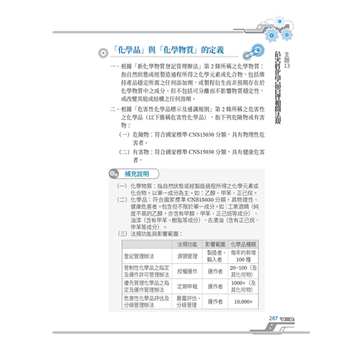 內容依據職業安全衛生相關法規及其他必考範圍做全面性整編與新增,如: