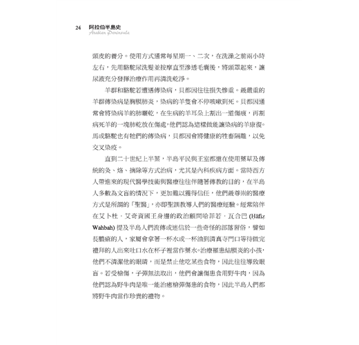 從伊斯蘭興起前、被詩人傳唱的古文明時期,到伊斯蘭興起、曾一度建立起帝國卻因重心轉移而淪為邊陲的中世紀,以及進入近代被殖民、保護與各區域逐漸崛起的獨立時期。作者以半島的地理環境為經,以時間演進為緯,交織成阿拉伯這部古老且浩瀚的歷史,內容深入淺出,運用大量的阿拉伯原始史料及半島各國歷史學者之作品,充分顯現作者長年在阿拉伯與伊斯蘭文化領域的耕耘。本書對任何對於阿拉伯半島有興趣的讀者而言,都是不容錯過的巨作!