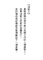 現在把上一段的「睡覺」改成「被壓扁、蒸發、燒死」,差不多就是我人生的寫照。反應爐內有問題?交給我。需要試試不安全的新疫苗?找我就對了。想知道自釀的苦艾酒有沒有毒?讓我去拿酒杯吧,混蛋。反正我死了,還能製造出另一個我。