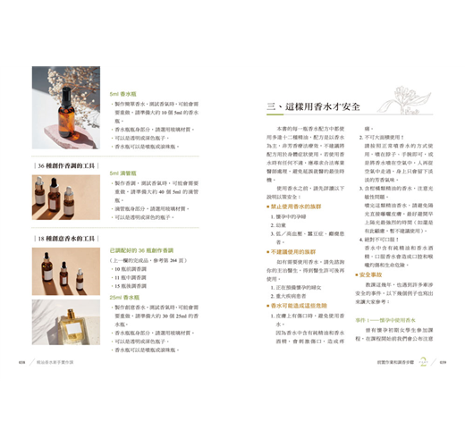 →香水配方收錄18種氣味豐富的創意香水,如:粉紅泡泡、清秀佳人、明亮晨星、青香活力、英倫紳士、酷帥輕奢、獨領風潮等。