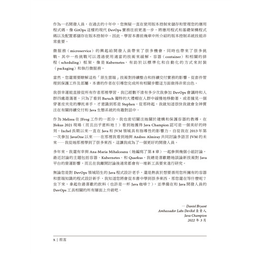 JFrog公司的Stephen Chin、Melissa McKay、Ixchel Ruiz和Baruch Sadogursky協助您評估一系列選項。這個列表包括使用Git原始碼控制、使用Maven和Gradle建構宣告、使用CircleCI的 CI/CD、使用Artifactory套件管理、使用Docker和Kubernetes容器化等等。無論您是使用 Jakarta EE、Spring Boot、Dropwizard、MicroProfile、Micronaut、還是Quarkus來建構應用程式,這份完整的指南都能滿足您的需求。