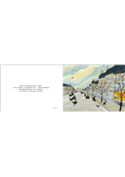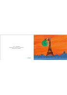 ◎故事最後一頁很有意思,畫家爬上艾菲爾鐵塔為太陽著上綠色,將巴黎染成藍色,並塗上紅色的天空,強烈又宏偉的色調,和之前古典柔和的色調大不相同。除此之外,畫家的高度也不同,在其他圖畫中,畫家大多置身街頭,如同一般的路人,在這一頁,他站在高處露出自信的微笑,還有微紅的臉頰,似乎暗示著畫家成了被仰望的知名畫家,或許畫家也成了某些人的太陽,他的思想與精神,照亮了人們。——讀者JJ