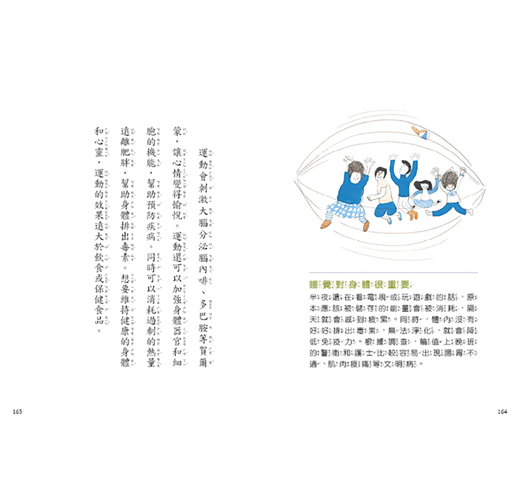 我突然頓悟,人生路想要走得穩、走得長遠,健康是最重要的底氣與資產。即便我的孩子們也都具備基本的健康觀念,但是隨著各種速食、網路三C當道,如今年輕人有非常高的比例作息不正常、睡眠不足、運動量不足、憂鬱比例節節攀升,再加上同儕彼此互相影響,孩子們若非從小就建立了非常堅實的健康觀、飲食觀、良好的運動與作息習慣,打從青春期始,當他們不再聽命於父母,便會一點一滴耗損我們苦心為他們打下的元氣與健康基礎。我鎮重且誠摯的和年輕爸媽們分享,在關注孩子的英文數學科學才藝之先,請務必先為他們扎下穩固的健康認知與建立堅定不移的健康習慣。這套書內容完整且易讀,推薦給有智慧與遠見的父母。