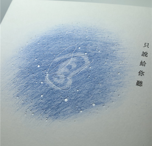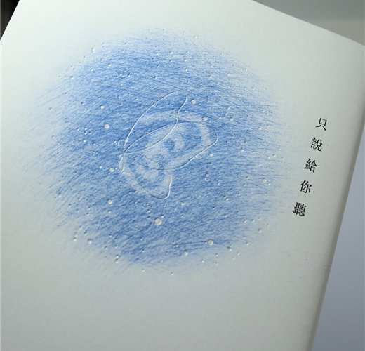 書封以樹洞中有一個人願意側耳傾聽為意象,傷被訴說後便幻化成輕盈的蝴蝶,在黑暗中可以看見蝴蝶於空中舞著,讓整本書微光燦燦,寂靜地閃耀著。