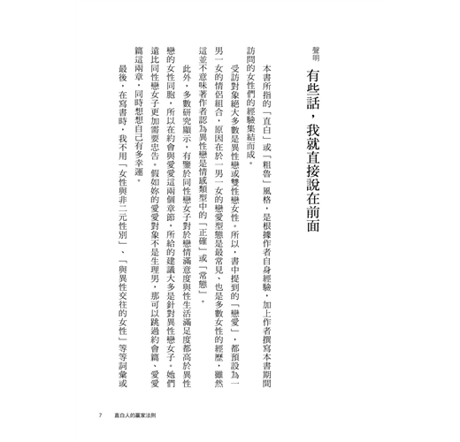 書中還有更多,關於我們生命中最重要的健康、人際關係、工作互動等等方面的知識,使你優遊自在,遠離地雷。身為直白人的力量,是一種天賦,本書將讓這份天賦成為我們的超能力。