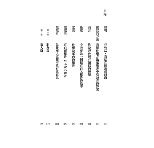 本書介紹一種簡單、有點粗暴、但非常正向的表達方法,用清楚明確的文字,告訴我們如何直白溝通,從此一帆風順,再也不讓自己心累。