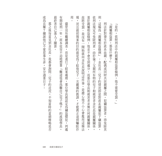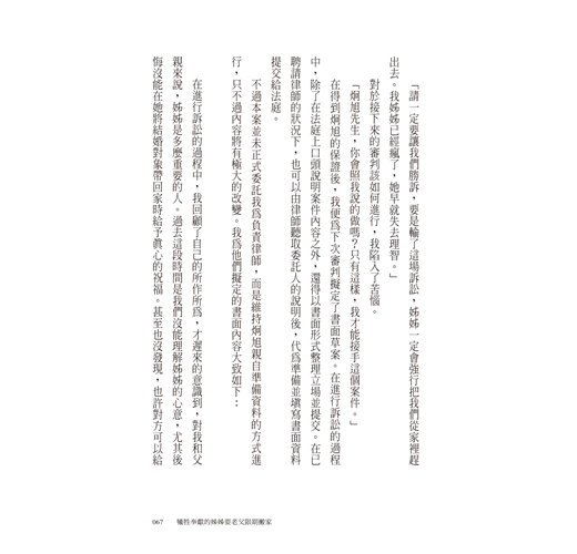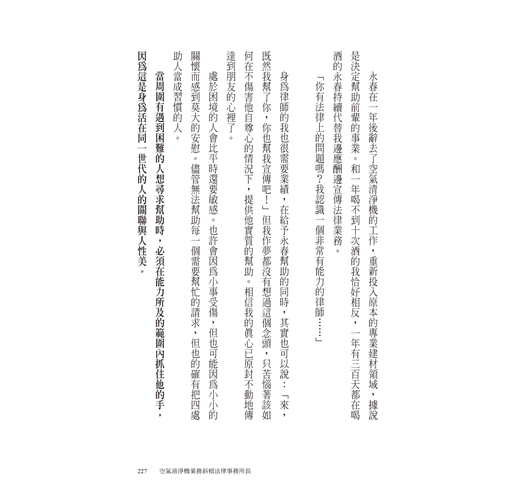 好多好多的故事寫在曺律師的文字之間,這些他經手過的案件,都看到在野法曹有一顆溫暖的心,和一雙洞察世故的眼。——王子榮 法官