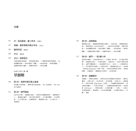19世紀初,因為工業發展而帶動的商業交流,英國掀起的基督教信仰熱潮,則引領一群宣教師走向亞洲,在地球兩端撐起另一種不同於工商業的連動網絡。本書細述英格蘭長老教會如何以中國閩南地區為據點,藉由醫療、教育等媒介將基督教文化傳播到大清帝國治下的泉州府、漳州府、臺灣府、潮州府,另有印度及馬來亞區域,其傳布歷程與策略可互相借鑑。