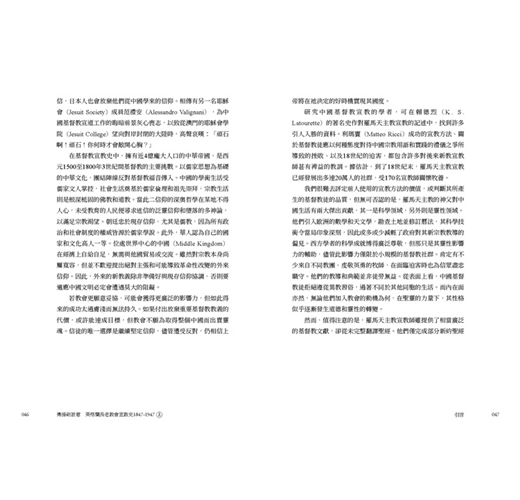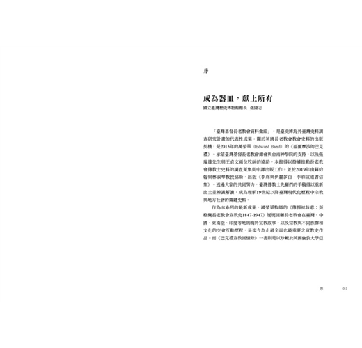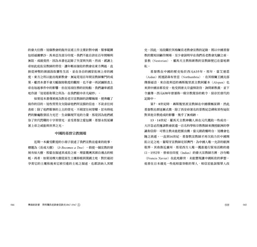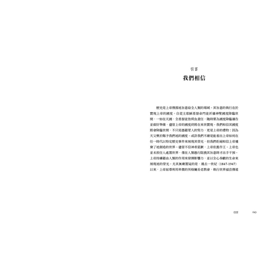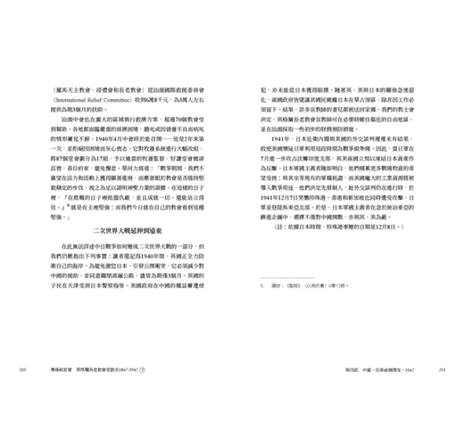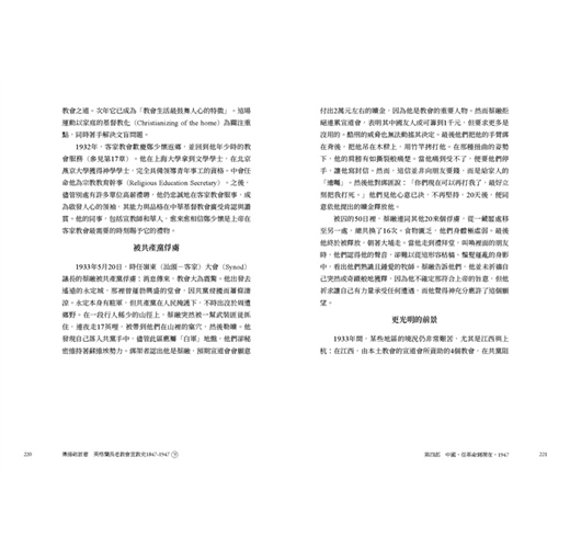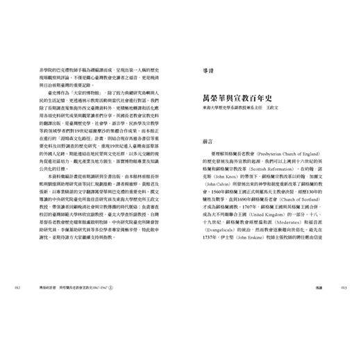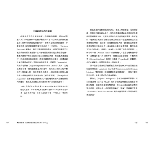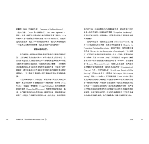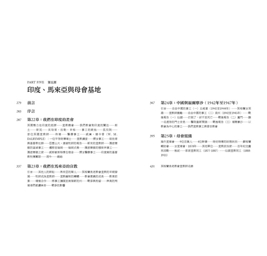 • 書中所記錄眾多宣教師們的所見所聞,藉著他們的視角,他們的足跡,他們的禱告,來洞悉那段少有人知的世界史面向,值得細細品讀。原書於1947年,分為5冊,由倫敦的英格蘭長老教會出版,本次出版我們很榮幸向臺灣基督長老教會歷史檔案館,取得徐謙信牧師之珍貴藏書,可以重現當年書封設計。全書內容分為5個部分,過去時常被學術界所援引,是目前較為全面也重要的基督教宣教史材料,今得以中文版面世。
