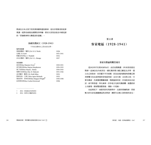 引言……自由中國的事工(一)五經富(1942至1944年)……英格蘭女英雄……自由中國的事工(二)泉州(1942至1945年)……戰後報告(一)汕頭……受挫但並未被摧毀……戰後報告(二)廈門……願一名虔信的鬥士安息……醫院重新開張……戰後報告(三)福爾摩沙……以教會為中心的事工……我們的差會與普世教會