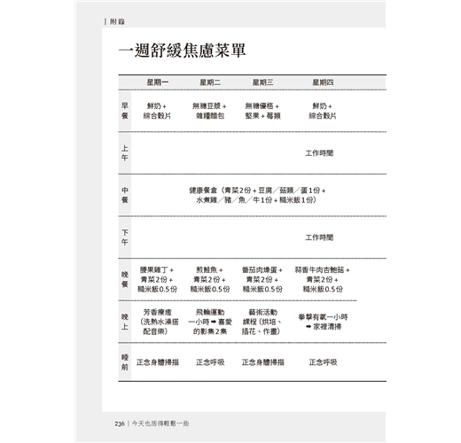【擬定合適的調養方式】包括:新興腦刺激治療、正念冥想、呼吸法、補充營養素、芳療、一週舒緩菜單等。