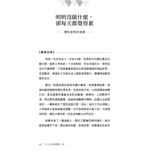 這是現代高度文明下的產物,尤其在開發國家更是常見,想要完全遠離並不容易。因此,平時就養成覺察自我身心狀態和適時減壓、保健大腦的習慣,是同時擁有工作表現及生活品質的必要條件。