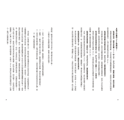 這聽起來既容易又單純,因為它正是如此。請記住,一談到整理規劃,其中並沒有什麼「一體適用」的方法,因為我們在此已經捨棄規則手冊,還連同你已經上鎖十五年的那堆文檔資料給一併燒了。《質感生活編輯術》將能讓各位透過應用、調整「生活」「工作」及「住家」三大類別中所呈現的策略,形塑出專屬你個人的常規。每個類別也都具備了一些小巧思、清單和實用建議,好讓你建立起對你和你的個人需求而言,不僅獨一無二,同時也更有組織的生活方式。這並不是要你做出一百八十度的大轉變,然後心不甘情不願地丟掉所有的東西,反而比較像是藉著刪去那些吃掉你寶貴時間的事物和思緒,而稍稍改善你的生活,變得更有效率一點。這是有關能在兩分鐘內選定明天要穿什麼—好在你有一只實用的膠囊衣櫥—而不是花上二十分鐘對著椅子上的那堆衣物感到驚慌失措;這是有關把手機鎖入抽屜幾個小時,讓自己沉浸在數位排毒(digital detox)的過程,而非有如動過外科手術那般,使其緊緊貼在掌心,怎麼拿也拿不掉;這是有關花上整個週日接連觀賞一季又一季的《魯保羅變裝皇后實境秀》(Rupaul’s Drag Race),而非前往參加你死黨的男友的表親的(失聯)姪子的生日趴,然後一點罪惡感也沒有。