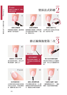 全書收錄簡單易懂的指甲保養&彩繪基礎,指甲疑難雜症的解決之道、美甲小重點,手部保養、修甲、養甲、卸甲、彩繪、裝飾、足部保養……等都詳盡介紹,可說是一本涵蓋的多本美甲筆記書精華的「美甲教科書」!