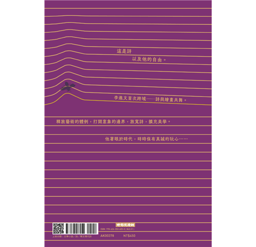․李進文現代詩「自由體」三部曲之最終篇章,亦最具挑戰。首度跨界,以畫作詩、以詩詮畫,兩相撞擊、提升、詰辯和再生。生活就是他的史詩,以多元技藝,寫出島嶼的詩。