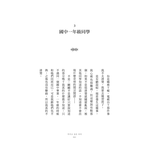 青少年在就學路上會遇到很多問題,很多是跟同儕間的關係,不管是雙方處不來,或是單方面的霸凌……在韓國霸凌事件並不少見,而作者李花兒也在這本書中點出非常多的議題,她把故事刻畫得非常完整鮮明,相當有畫面。