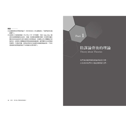 本書提到許多陰謀論,我們會看到陰謀論如何協助創造了我們生存的世界,
