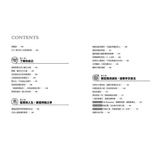 ★作者雖果決到可以在單一支股票上投入30億韓元,但他的投資並不莽撞。儘管狠辣,可他的話語間蘊含溫暖;雖然迫切,但他的行為中帶著從容。如果我們不把重點放在他只花5年就賺了55億,而是把重點放在作者的投資歷程上,我認為,我們的投資成果也將指日可待。──作家 金度潤/百萬訂閱頻道「金作家TV」〉經營者
