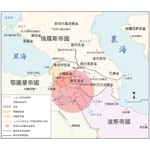 納卡的爭奪,其實是高加索當地勢力與周邊強權相互拉扯的縮影,這並非近年才有,而是從更早以前的時代就留下來的問題。如本書所說,自十六世紀之後,高加索便是伊朗薩法維王朝(Safavid Dynasty)與鄂圖曼帝國(Ottoman Empire)爭奪勢力範圍的地區。但是,從十七世紀之後,加入了俄國的競爭。1722年當薩法維王朝滅亡之際,俄國與鄂圖曼帝國立即瓜分了高加索,可是,薩法維王朝的殘餘勢力仍試圖取回高加索的土地。十九世紀初期,伊朗新成立的卡加王朝(Qajar Dynasty)持續與俄國及鄂圖曼帝國交戰,大致以阿拉拉山(Mountain Ararat)作為三方交界處。