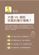 1. 不用複雜難懂的艱澀理論,直接告訴你跟賺錢有關、必須知道的常識!例如大盤指數是如何計算出來的?為什麼大盤漲的時候,還是有些股票不動如山?為什麼國安基金、四大基金都愛權值股?財經新聞裡常講的「量價背離」、「量先價行」是什麼意思?為什麼投資人需要關注美股、日股,臺股的ADR、GDR又是什麼?