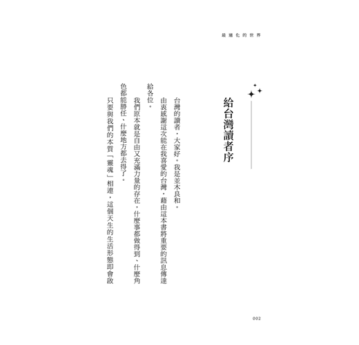 透過舉辦工作坊、創辦學校、演講等活動,超越種族、宗教、男女的隔閡,將「愛與調和」這個與高次元睿智存在相連的宇宙真理和本質,傳播到世界各地。是當今日本最厲害的心靈諮商師,YouTube頻道訂閱人數14.4萬人。