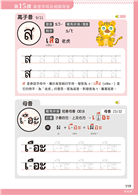 ●《例字配例句》每課後面附有例字和例句示範,且只選用已學過的泰文字母為讀者示範,確保你每個單字都會唸,徹底複習。