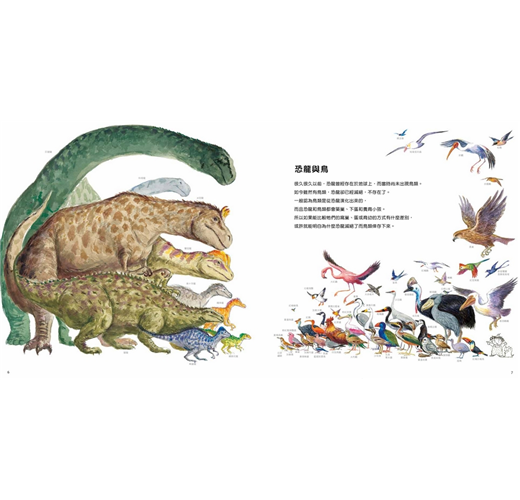 繪本從生物學的祖徵與衍徵的觀念切入,探討現生鳥與恐龍在鳥巢與生殖行為上可能的關聯性,並衍伸出幼體發育速度、生物分類特徵、飛行假說以及第五次大滅絕事件等豐富的科學內容。此外,無論是生物的多樣性、尊重個別差異的觀念,以及期望孩子健康長大的那一顆心,都清楚地呈現在這不到五十頁的篇幅中,可見作者在科學繪圖與文字的掌握度已臻化境,是一本必須擁有的蒐藏繪本!