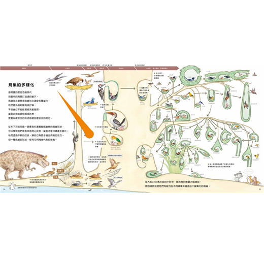 恐龍因為巨大隕石的衝擊而滅絕,鳥類則存活下來,透過鈴木守的精緻繪筆與圖解,讀者們將看到各種生物拚命維護生命、養育後代的過程,也能體悟生物為求生存與大自然抗衡所做的努力。