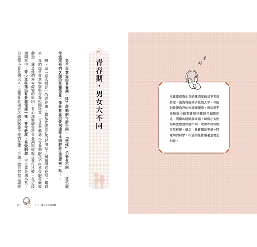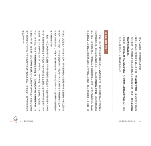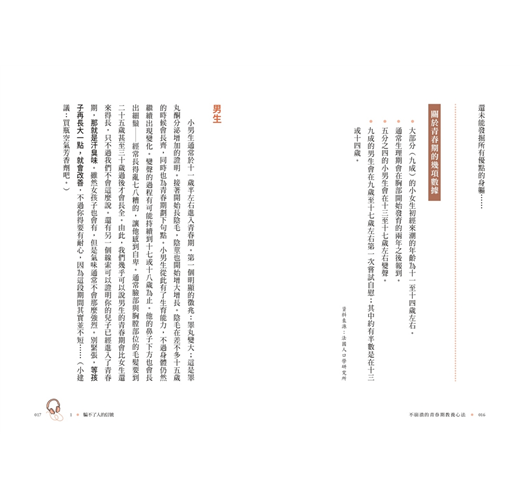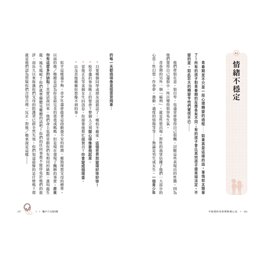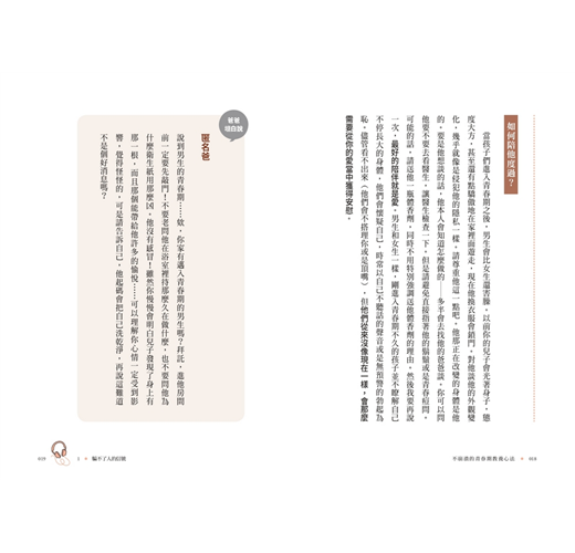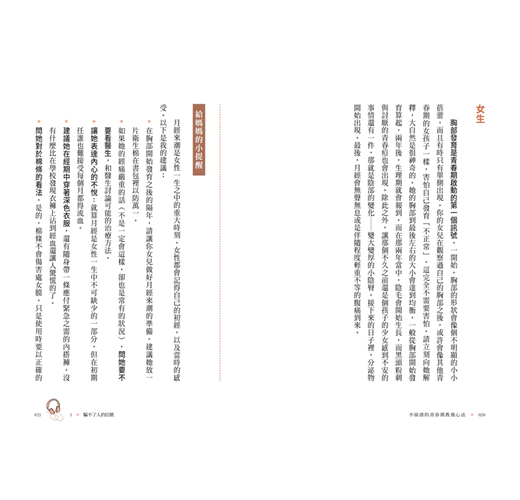 ◎「這本書很像是青春期教養的微百科,它所列舉的青春期問題相當豐富,有些還是我從來不曉得、沒注意到的問題。作者的筆調幽默,讓人讀來感到愉悅、放心,很值得推薦!」