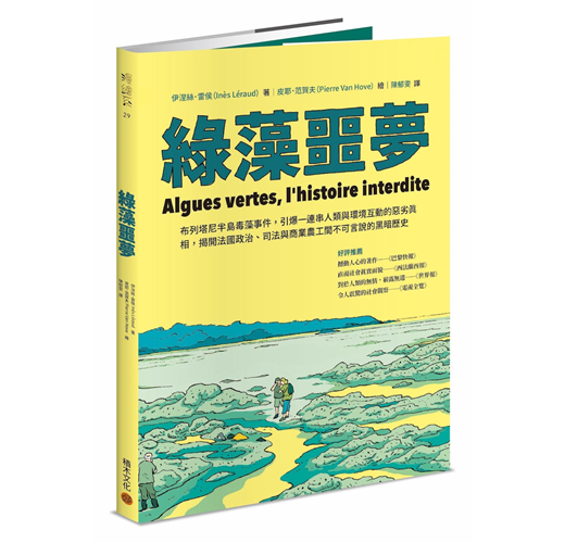 法國布列塔尼半島區溪間海灘不起眼的綠藻群,在不過數十年的時間裡,便擴張成了生態惡獸,將原本生機盎然的廣大潮間帶化為地獄惡夢般的死亡舞台,接連奪去無數性命。歸結緣由,當地在二戰後轉型的現代化畜牧產業廢棄物排放實為關鍵因素。然而要全盤推動經濟規模龐大的跨國產業轉型,又是談何容易?於是從政府到產業之間一連串的暗盤操作,藉著推諉、遮掩與拖延,試圖逃避面對與解決問題的沉重壓力,讓這個綠潮惡獸至今仍然持續肆虐。透過這本報導文學式的漫畫著作,讓我們一睹地球另一端這段心酸故事的始末,然而闔卷望向自己的故鄉,卻又不禁喟嘆,同樣的事情不也是仍在持續上演嗎?