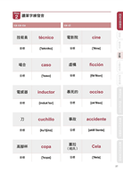 本書的單字學習單元,完全依照實際生活中的24個分類,選出800個最實用的單字,並且以心智圖方式整理,學習起來更有效率、更容易記憶、更快累積單字量。除了基本食、衣、住、行…等必備單字之外,也包含西語圈文化相關單字,例如佛拉明哥、探戈、聖家堂等等。