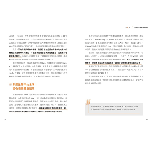 就算是進入穩定甚至衰退期的產業,都有可能因為需求的變化或創新的技術出現,重新回到高速成長期,把握住這波趨勢的力量,搭上獲利的風向。例如:電動車和自動駕駛(汽車業的創新技術)、航運(需求增加)。