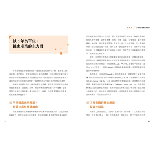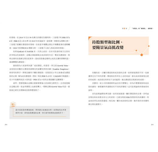 散戶投資人雖然很難照著做,卻常常引用這句話,但是也不能直接解釋成無條件一定要長期投資,特別是像在韓國這樣充滿活力的市場,如果10 年只投資一∼兩檔個股的話真的會完蛋。依我來看,巴菲特的格言可以解釋成「找出投資至少10 年都不會有問題的企業」,或是對企業的商業模式徹底研究到有充分把握後再投資。