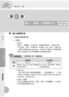 此部分由三民輔考權威名師依據最新命題大綱編寫,共分成4章,27個主題,內容涵蓋:1.個人、家庭、社會與文化、2.國家、政府與政治、3.民主與法治、4.生產、分配與消費。每章皆有重點整理加精選試題,關鍵考點並特別標示,輔以表格歸納整理相似觀念,易混淆處加強耳提面命,模糊概念輕鬆明瞭,有效幫助考生融會貫通公民考科內容。