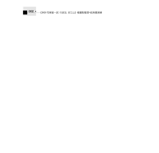 六大行政法章節加上歷屆題目詳解,平均一個章節不到一百頁,全部一口氣搞定,順利放眼二試!