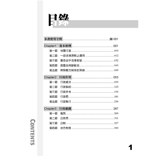 行政法範圍浩瀚無邊,這次就別再費心到處蒐集考點了。這本書就是妳/你最好的選擇,因為我們把面對一試考題必須具備、反覆出現的「法條、基本法理、實務見解還有歷屆考古題」通通放在同一本書了,還按照教科書的體系編排,讓讀者念完每個章節,就能馬上練習對應題目、享受細心詳解,給妳/你強大信心前往考場!
