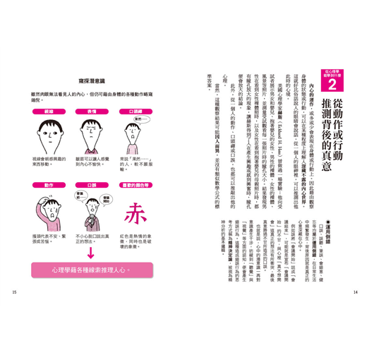 本書的特色即是將專業、系統的心理學知識,以易懂清晰的圖畫,深入淺出又清楚明白地引導讀者進入心理學世界,只要與人接觸就能用到心理,《學圖解心理學》是您進入心理學殿堂最輕鬆有趣又不失專業的方式。──楊明磊(前淡江大學教育心理與諮商研究所副教授)