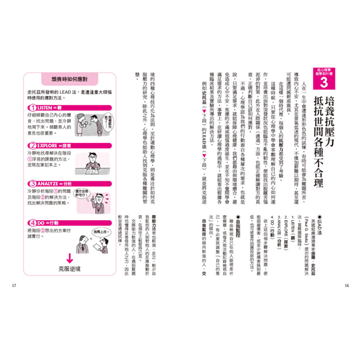 這種時候,只要從心理學中學會客觀理解自己的內心如何運作,並培養出面對突發狀況也能臨危不亂的韌性,便能找出脫離苦惱泥沼的對策。此外在人際關係(溝通)方面,也能正確解讀對方的真意,正確判斷自己該如何對處。