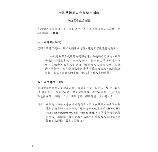 新制全民英檢中級寫作+口說擬真試題TEST 02