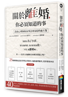 當婚姻走到盡頭而感到徬徨無助時,本書的不同故事與專家意見,將啟發人們對於離婚更深層的省思。