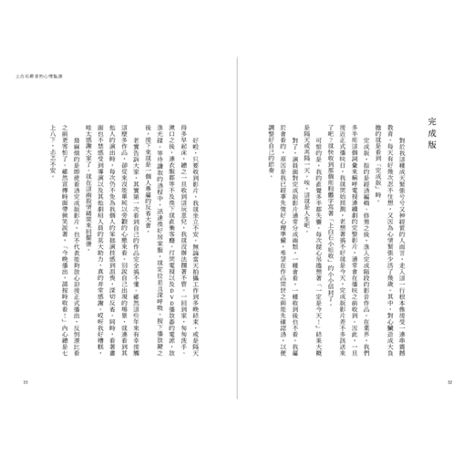 〈完成版〉 對於我這種成天緊張兮兮又神經質的人而言,走入這一行根本像接受一連串震撼教育。每天有好幾次忍不住想,又因為心情緊張少活了幾歲。其中,對心臟造成大負擔的就是看到「完成版」時。 完成版,指的是經過編輯、修剪之後,進入完成階段的影音作品。在業界,我們多半用這個詞彙來稱呼電視連續劇的完整影片,通常會在播映之前收到。因此,一旦接近正式播映日,我就開始預測,老想著搞不好就是今天,完成版影片差不多該送來了吧?就快收到那個用粗體字寫著「上白石小姐收」的小小信封了。 可惜的是,我的直覺多半都失靈。每次...