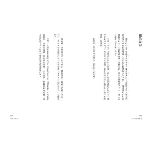 透過她的文字,你會發現那些原本你感到惶惶不安、沒有方向的東西,其實默默地走著走著,都可以看到眼前的路。你會發現那些你原先以為不會在相遇的人,卻在某年某月的某一刻,生命又重新交會。